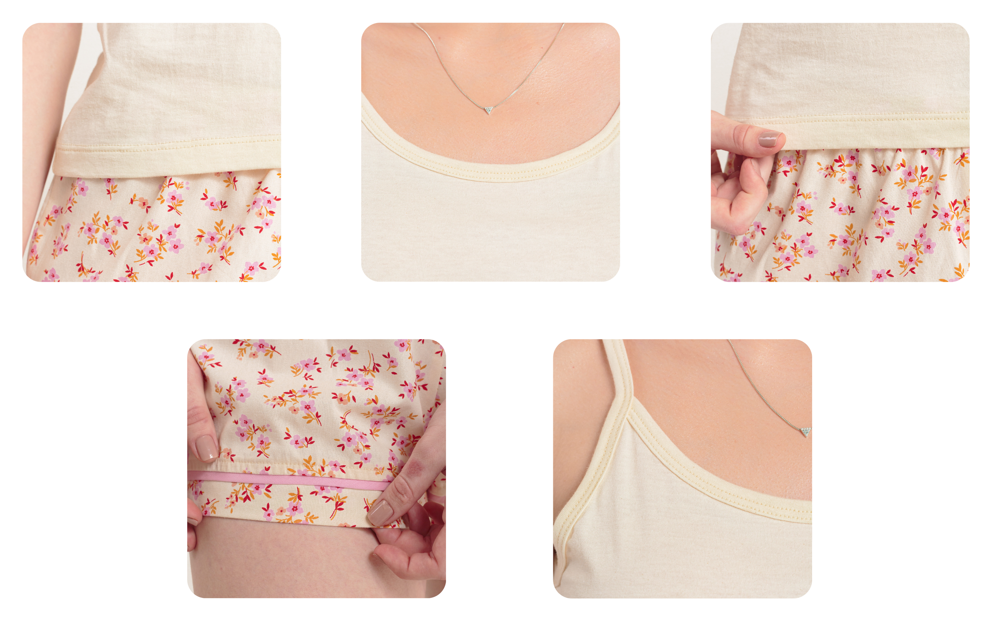 Sinta a magia dos jardins primaveris como uma fadinha das flores com o Conjunto Flor de Algodão. É composto por uma regata de alcinha e um shorts confortável – ideal para noites de verão cheias de magia.